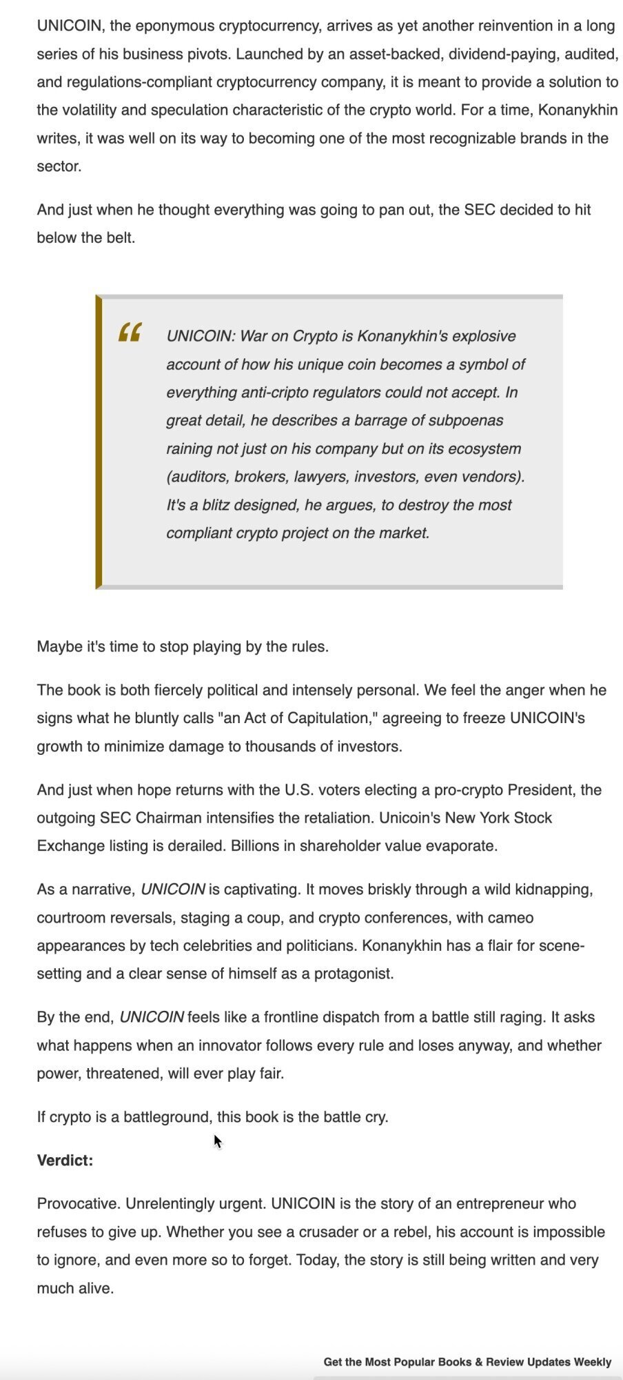 I intend to promote the book, getting the maximum attention to the SEC’s ongoing War on Crypto lawfare against Unicoin. Government conspiracies thrive in darkness, and it is my job to