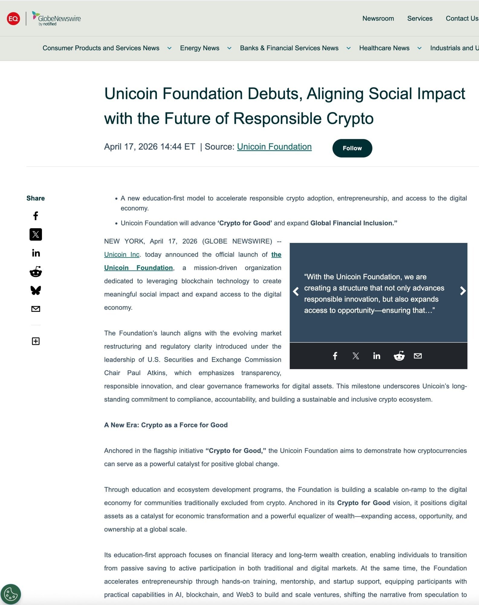 1/ I’m pleased to share with you the first press release related to Unicoin Foundation: