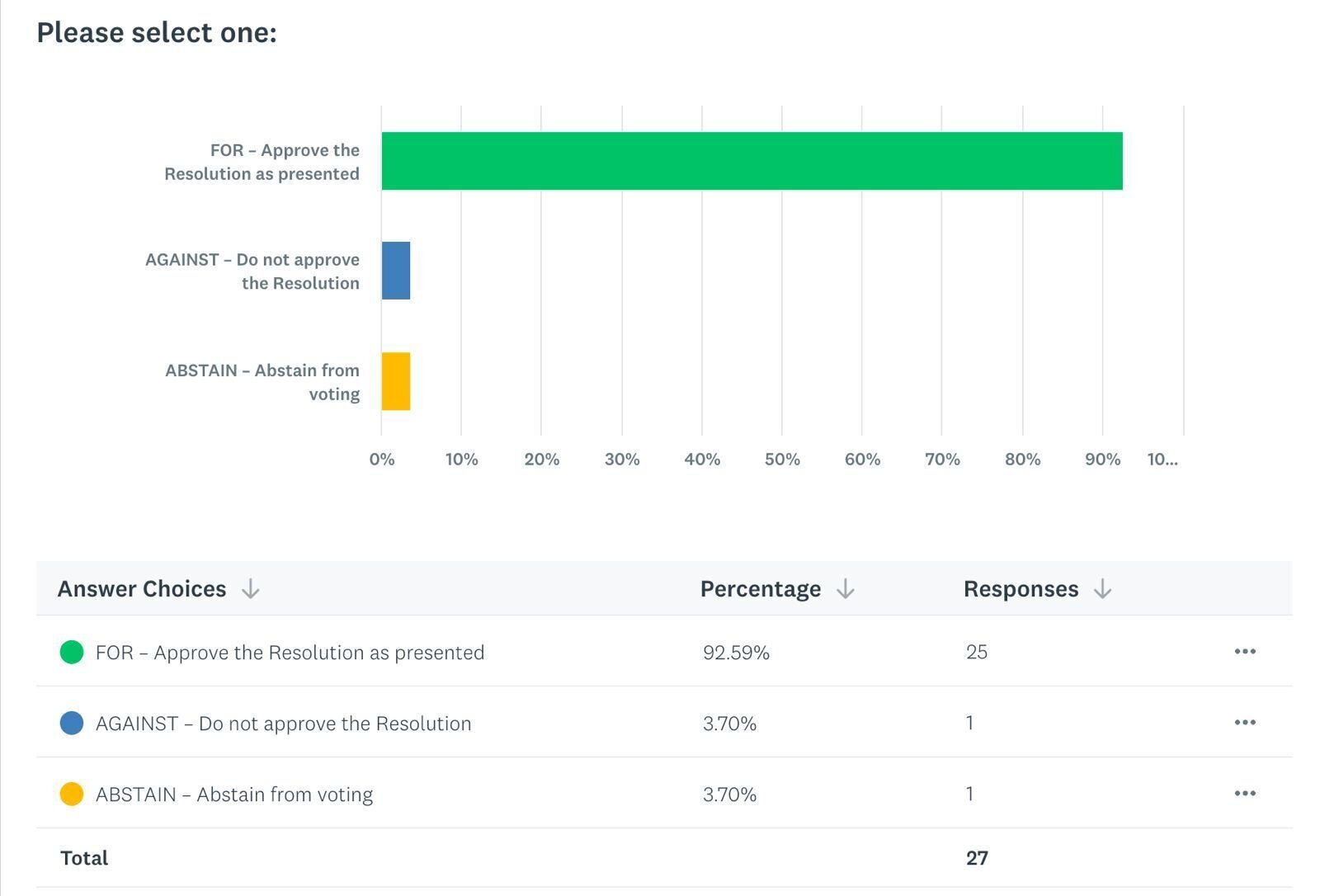 The Resolution has been supported by 25 out of 27 Directors:
