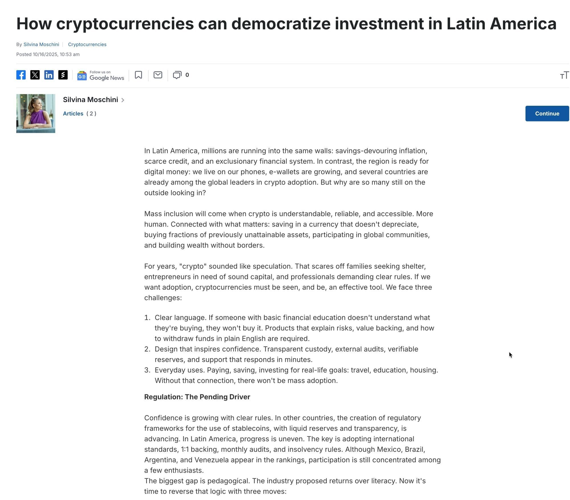 2/ Today, I’m pleased to share with you a new article by Silvina Moschini, the co-founder and Chief Strategy Officer of our company, published by Investing.com: