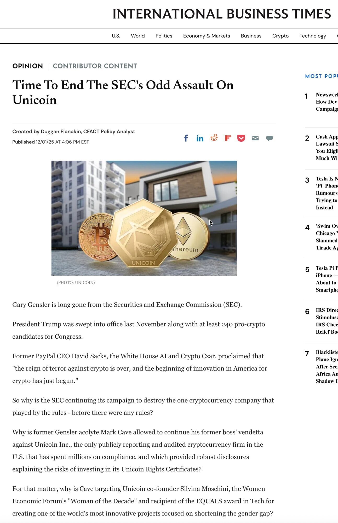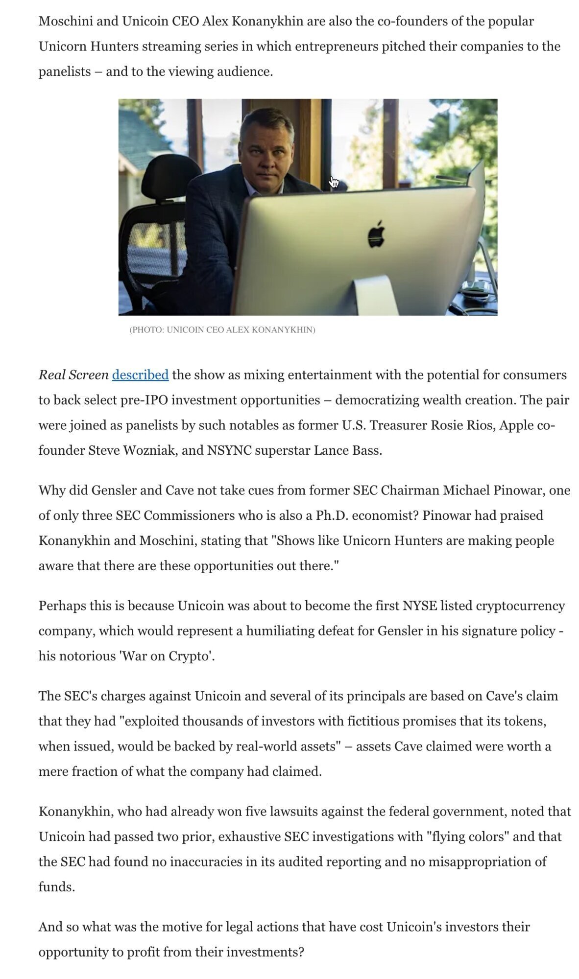 What they might not have anticipated was that Gensler’s SEC would block the company’s planned September 2024 initial coin offering (ICO) and thus sabotaged Unicoin’s ability to complete the agreed-upon real estate transactions that provided the collateral for the Unicoin Rights Certificates.