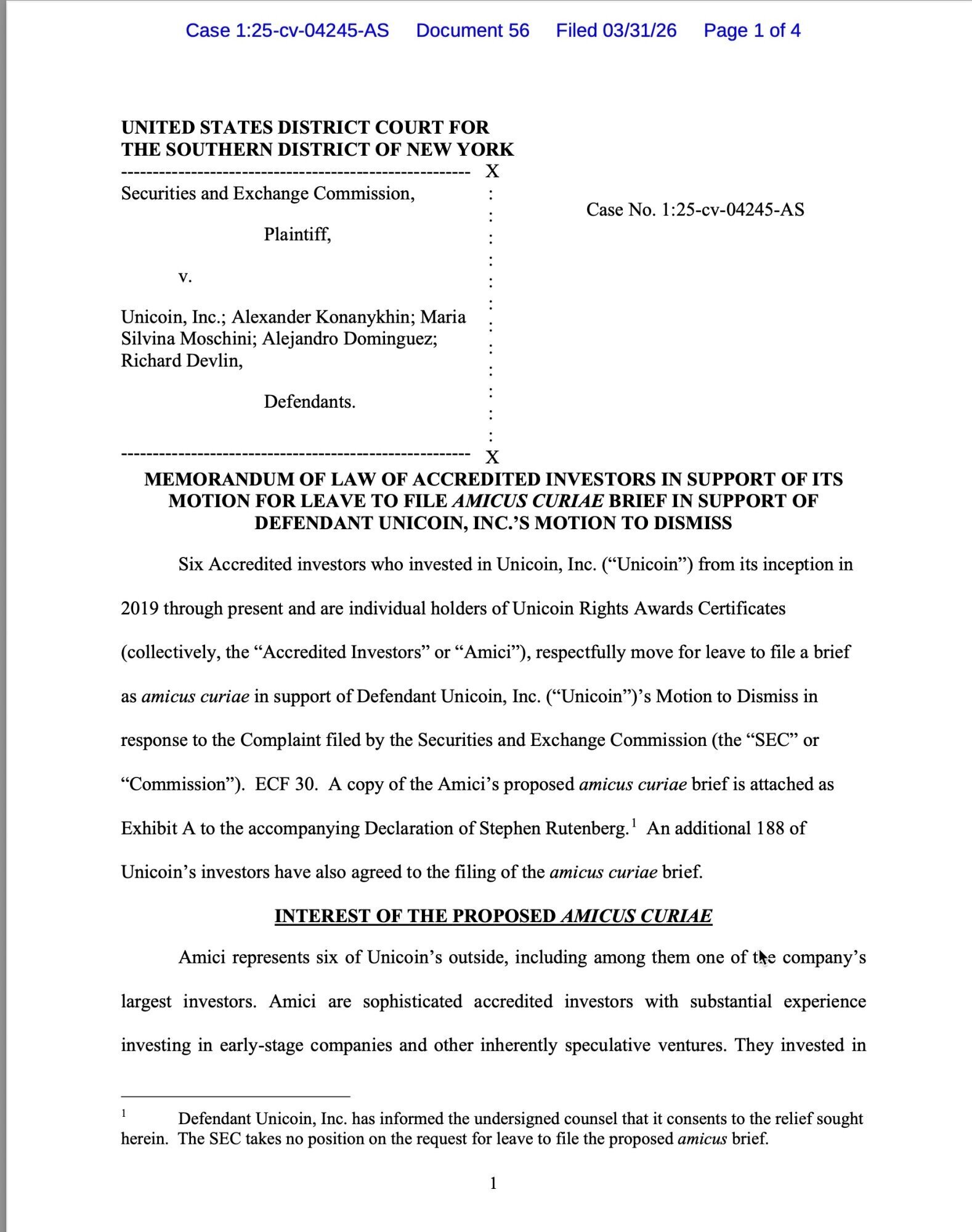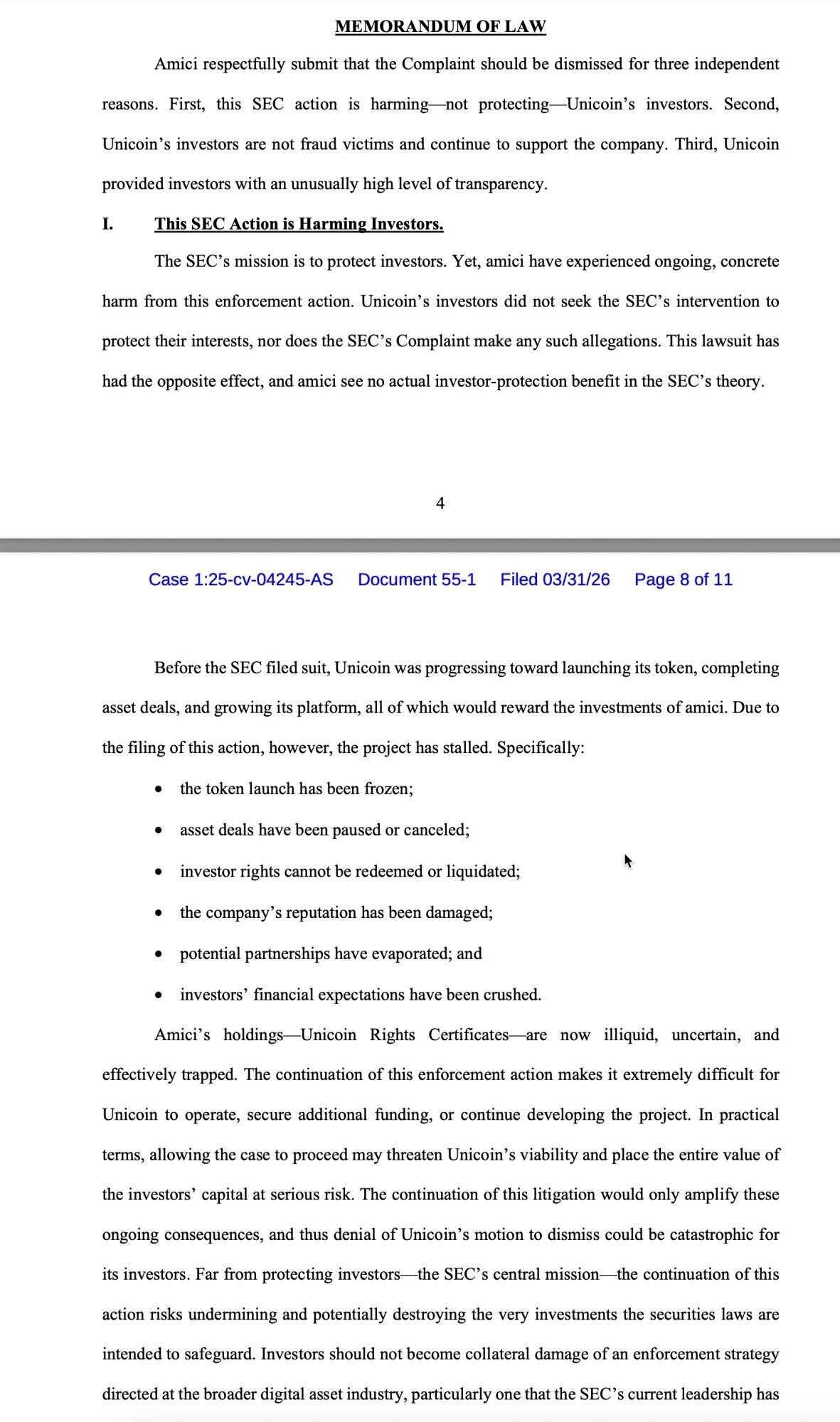 Many of our investors signed a letter to the Court stating that the SEC’s persecution of Unicoin is hurting their investments: