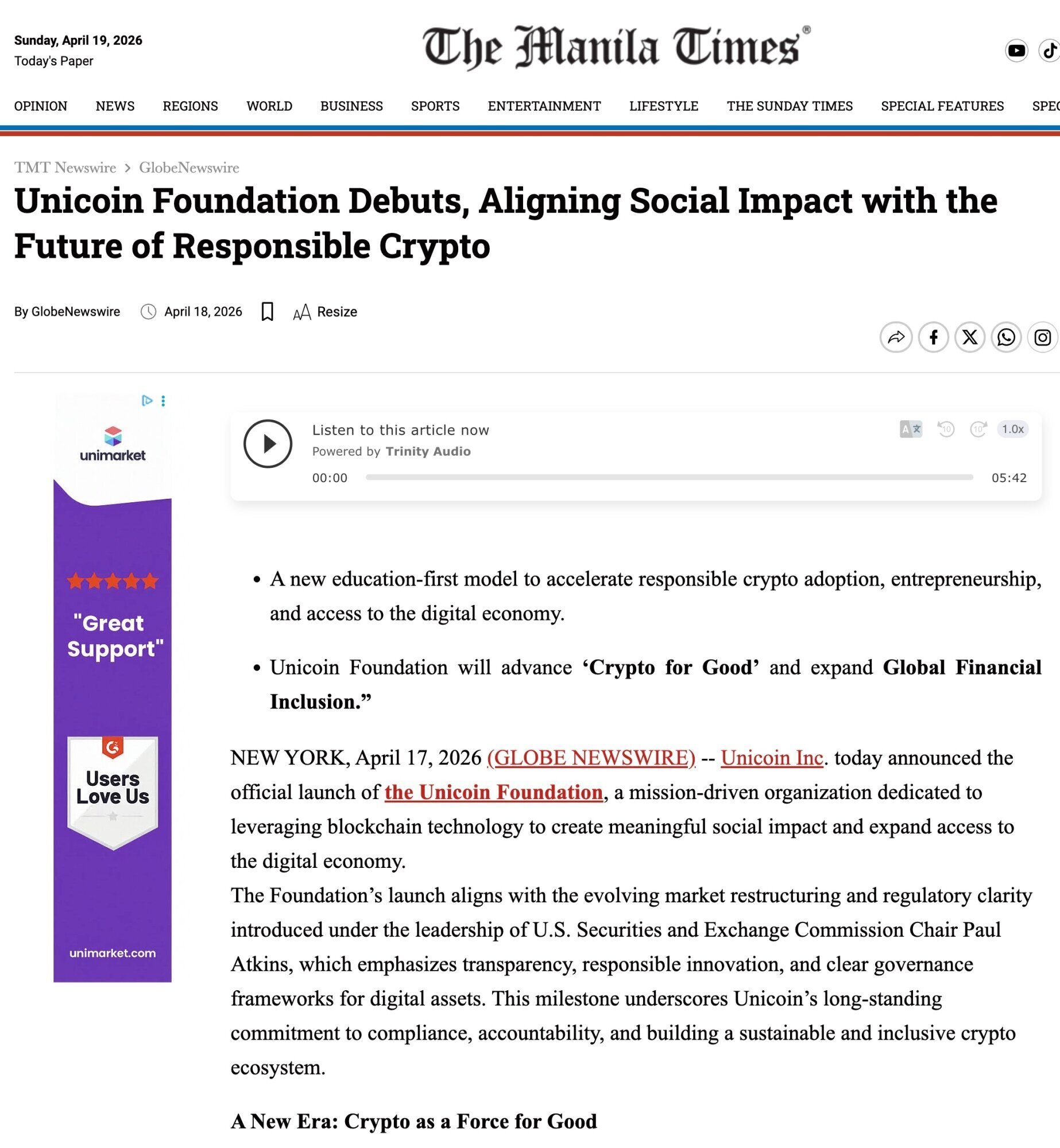 2/ Various publications started to repost the announcement of the Unicoin Foundation. Here’s one example: