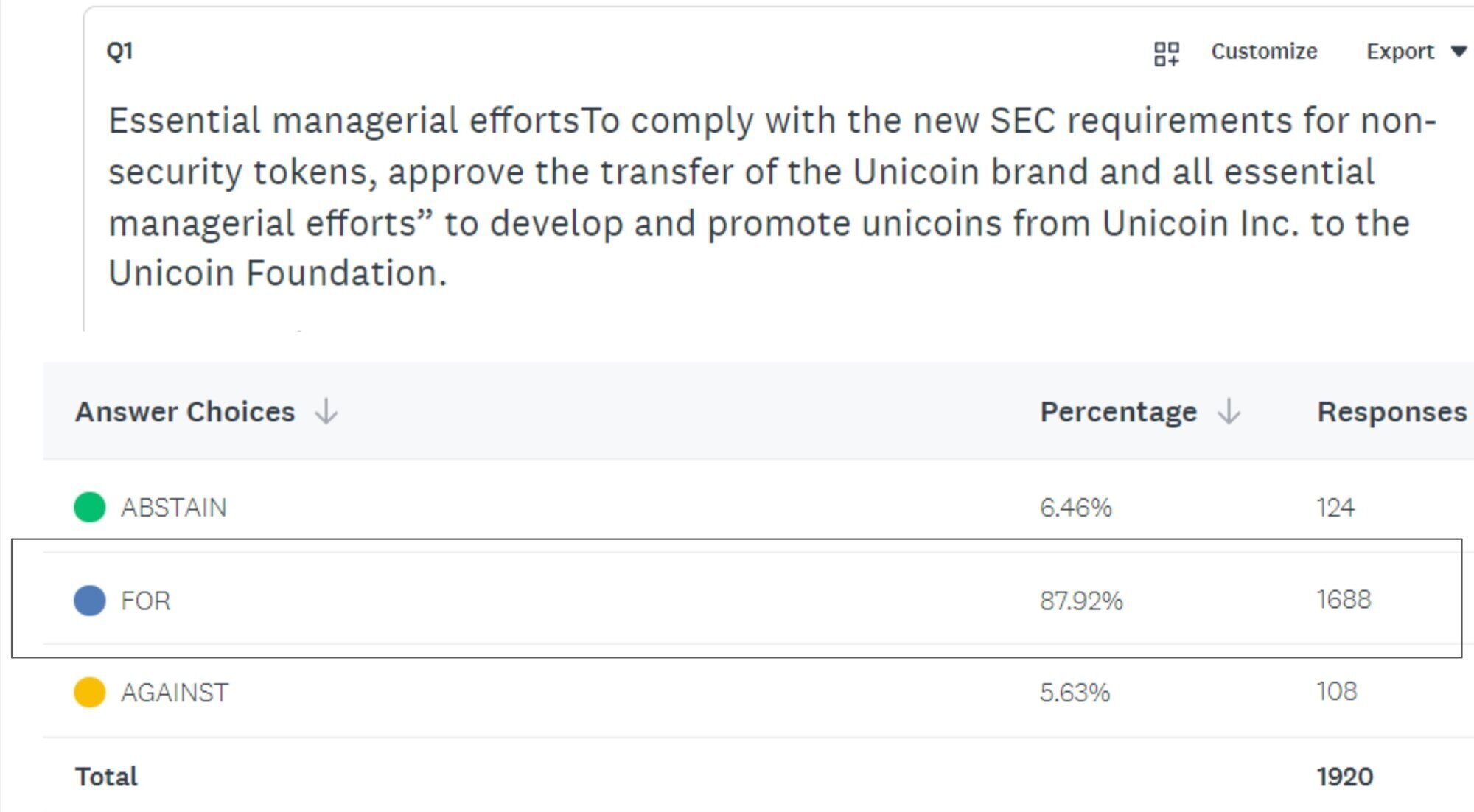 Our shareholders expressed strong support for our recommendation to adjust Unicoin’s strategy to comply with the new SEC criteria for non-securities.